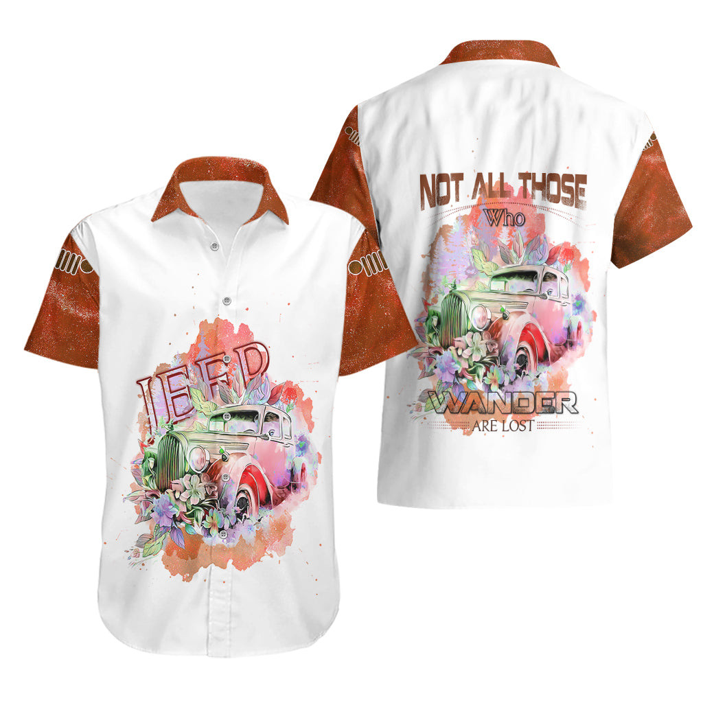 Chemise hawaïenne Jeep orange galaxie ceux qui errent ne sont pas perdus