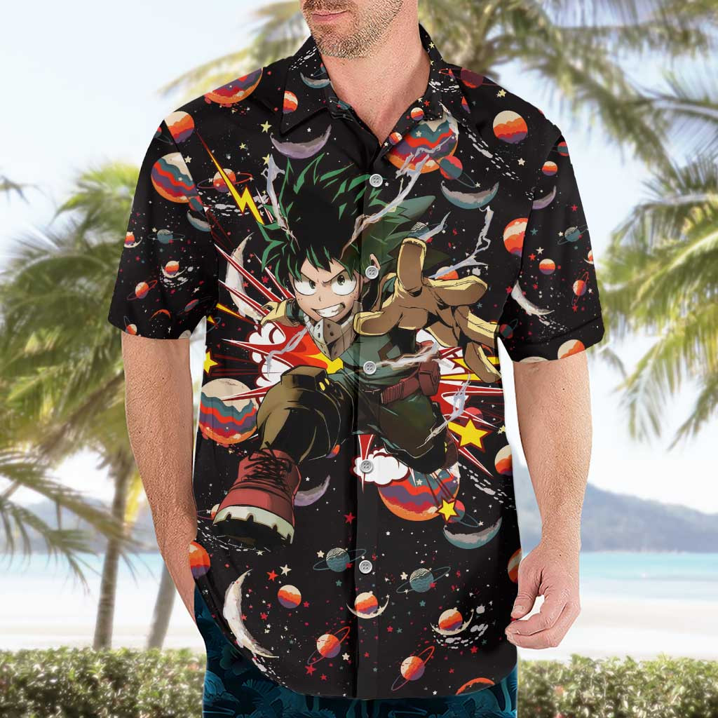 Chemise hawaïenne Univers rétro Deku My Hero Academia motif cosmique